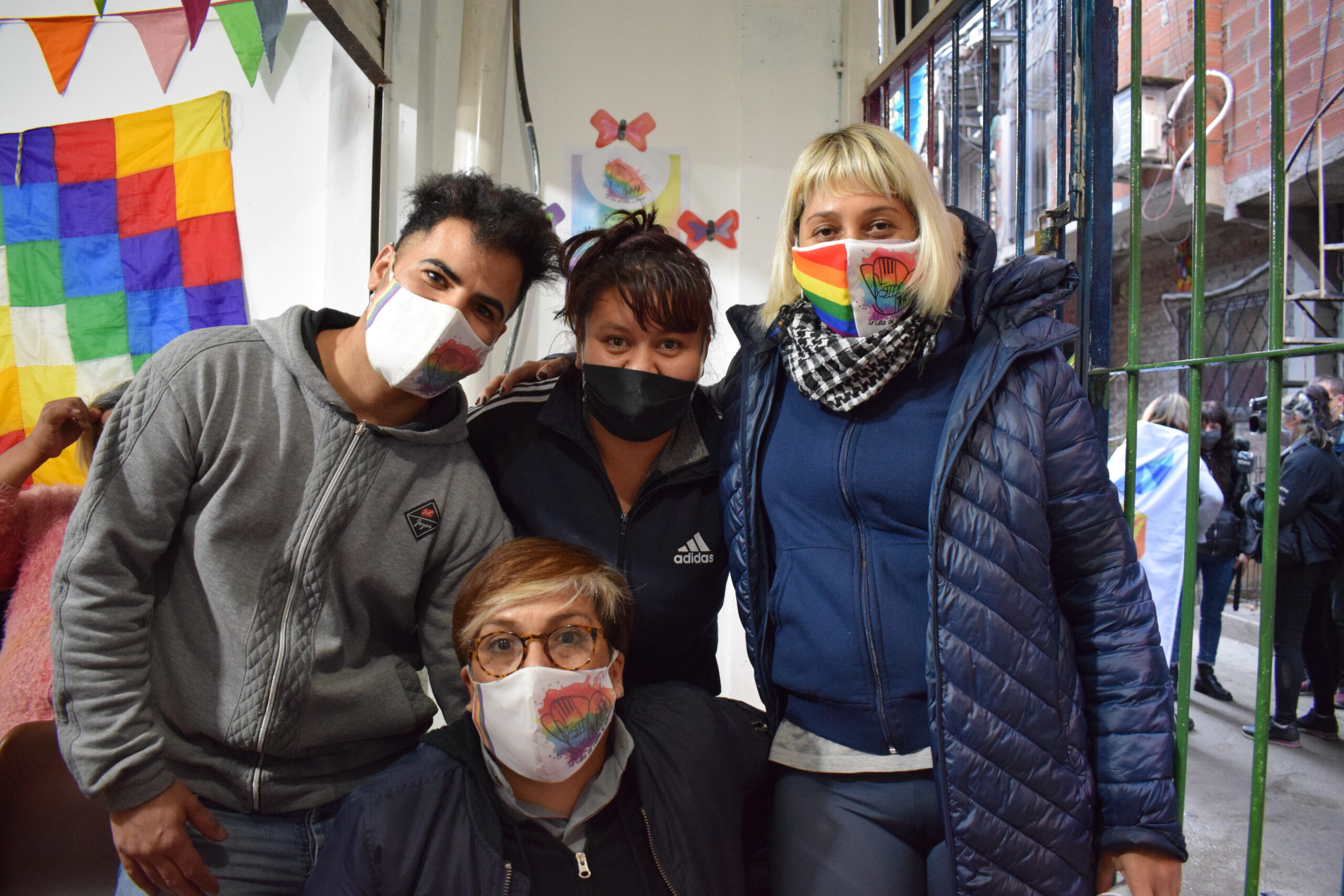 Recibimos en nuestro espacio ubicado en la Manzana 114, Calle 14, Casa 456 de la Villa 31, a los hermanxs y compañerxs diversxs con quienes a diario caminamos y construimos comunidad. Tuvimos la alegría de ser visitadxs por compañeras, históricas referentas de la lucha por los derechos de la comunidad travesti trans en Argentina, quienes nos abrazaron cálidamente y tiñeron de fiesta y brillos la jornada. Celebramos la presencia de Clara Fox junto a compañeras de Mis Trans Argentina, Daniela Ruiz de la Cooperativa Teatral Siete Colores Diversidad, Ivana Guitierrez quien es Directora de Diversidad del Municipio de Morón, Say Sacayán, activista trans de MAL, Marisol Brandan de Alexa Espacios Convivencial, sobreviviente, Carla morales Ríos y Mar Morales de Artistas Activistas Travestis – Salta y a las compañeras de la Casa de Las Mirabal.