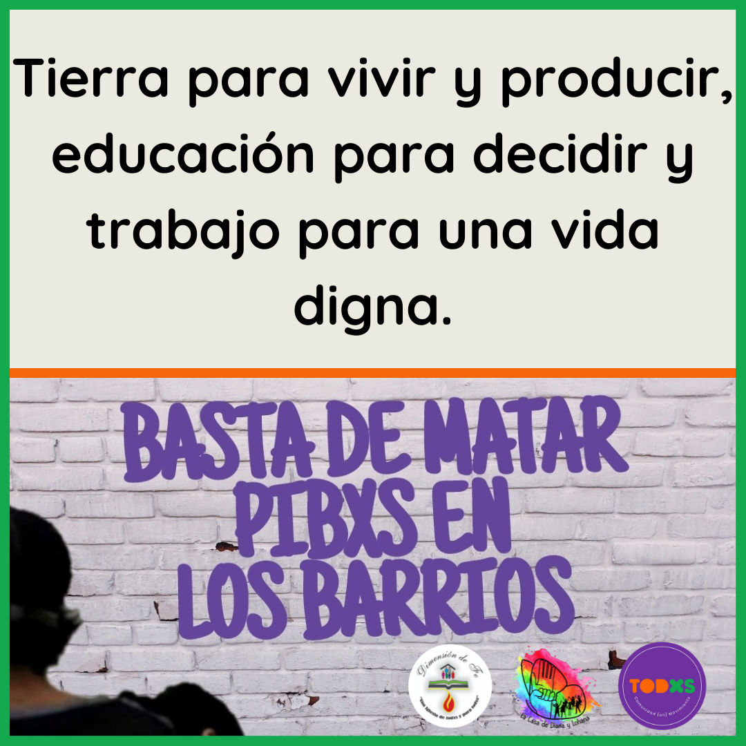 A la par de nuestro reclamo por la no criminalización de la juventud empobrecida, exigimos políticas públicas que ofrezcan y garanticen a la población tierra para vivir y producir, educación para decidir y trabajo que permita llevar una vida digna.