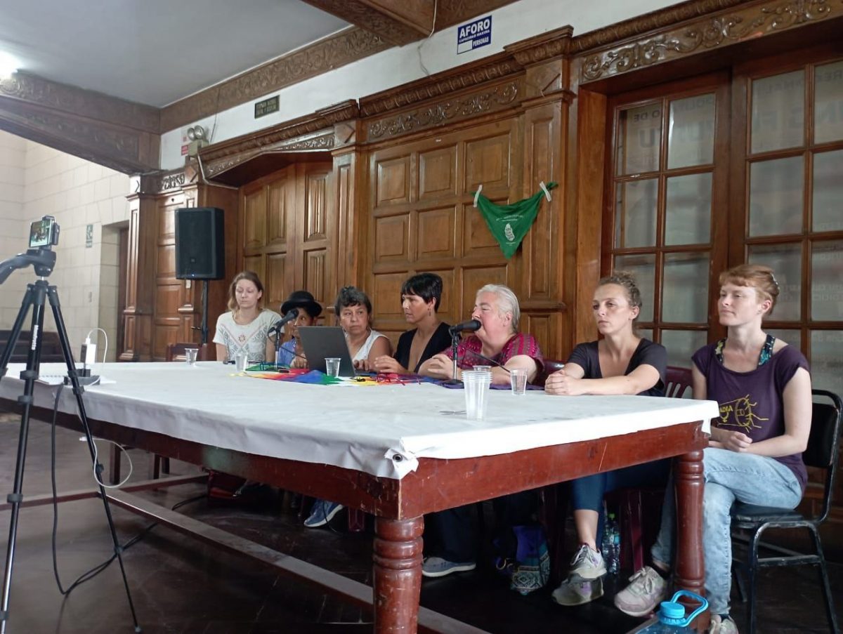 En conferencia de prensa, integrantes de la Delegación Feminista Plurinacional