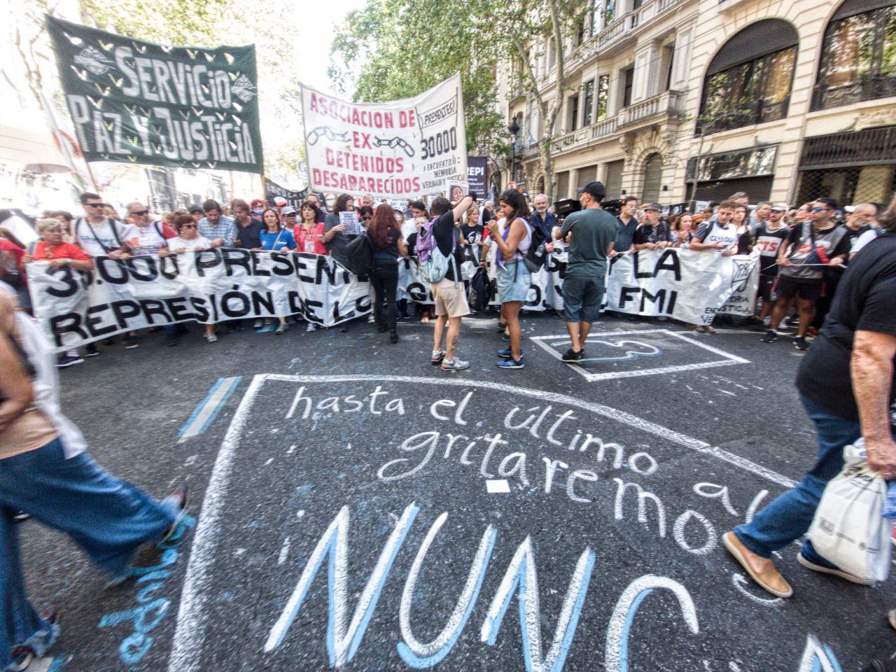 Y la deuda viene de la mano con un ataque a los derechos humanos y democráticos. Por un lado, las medidas pactadas con el Fondo nos traen más pobreza, bajos salarios y jubilaciones, desempleo y precarización. Recorte de planes sociales. Menos presupuesto para salud, educación, vivienda, políticas de género y diversidad. Y además profundizan el modelo de extractivismo, saqueo y contaminación ambiental con tal de juntar dólares para pagar la deuda. ¡Así, con hambre, ajuste y entrega no hay derechos humanos!», señala el documento alertando sobre otros flagelos como el extractivismo y la desidia ambiental que se hace cada vez mas evidente e incluso afecta negativamente en la economía de muchos sectores.