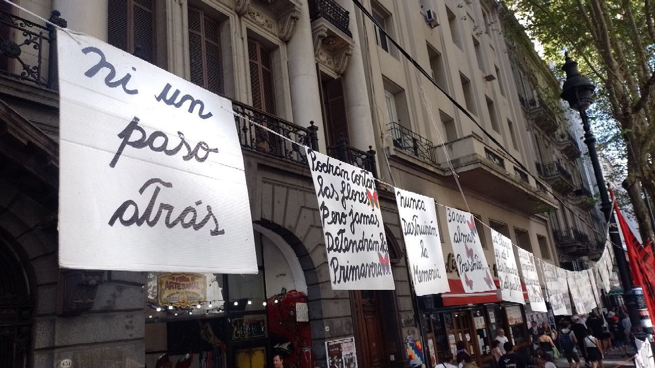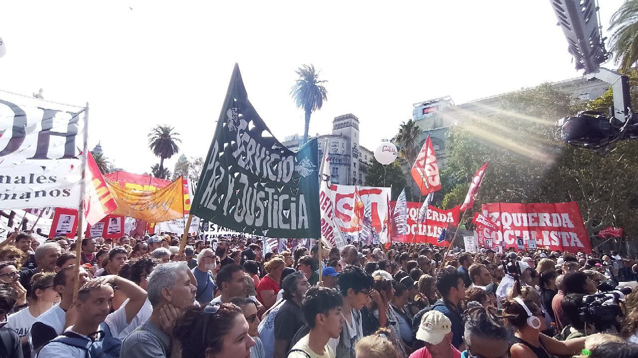 «Por Julio López, Santiago Maldonado, Rafael Nahuel, Luciano Arruga, Facundo Castro, Carlos Fuentealba, Teresa Rodríguez, Mariano Ferreyra, Maxi Kosteki, Darío Santillán, Víctor Choque y tantos y tantas más, seguimos defendiendo los derechos humanos de ayer y de hoy. Exigimos al gobierno la apertura y el acceso a todos los archivos de la represión. Lo mismo a la Iglesia, que sigue negando su complicidad. Así como las Abuelas y la lucha popular ya recuperaron a 132 nietas y nietos, vamos por la identidad de todes les jóvenes apropiados. Se deben acelerar y unificar las causas contra genocidas, porque 1.023 de los enjuiciados murieron sin sentencia, con impunidad biológica. Como el 76% de los genocidas condenados está en su casa, decimos basta de prisiones domiciliarias: ¡cárcel común, perpetua y efectiva! Muchas ex presas y presos políticos, ex exiliados, hijas e hijos y sobrevivientes reciben pensiones mínimas y no tienen obra social. ¡Que se cumplan las leyes reparatorias y se actualicen sus haberes! A dos años de su desaparición, exigimos saber dónde está Tehuel. Repudiamos las pistolas Taser, esas picanas eléctricas que compraron Rodríguez Larreta, Patricia Bullrich y ahora también Aníbal Fernández. Exigimos el desmantelamiento de todo el aparato represivo. Y basta de gatillo fácil, razzias y detenciones arbitrarias, desapariciones, femicidios de uniforme, redes de trata, torturas y muertes en sitios de detención. Y repudiamos el envío a Rosario de militares con la excusa de urbanizar barrios, y de más policías y gendarmes con la excusa del narcotráfico. Junto al aparato estatal y los puertos privatizados, esas fuerzas represivas a las que quieren legitimar son parte del delito».