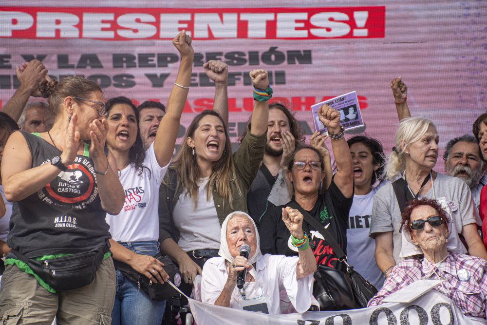 «Esa batalla sin tregua del movimiento de derechos humanos y las organizaciones populares, con apoyo social, derrotó los intentos de impunidad. Hasta setiembre pasado, último dato oficial, logramos 1.088 represores condenados y otros 495 procesados. Es un triunfo democrático ejemplar, porque somos el único pueblo del mundo que logró que la justicia civil juzgue y condene un genocidio cometido por el propio Estado. Pero falta… Porque el gobierno sigue sin abrir todos los archivos de la represión. Porque siguen sin restituir todas las niñas y niños apropiados. Porque las causas a genocidas y sus cómplices se lentifican y algunos mueren con impunidad biológica, como el empresario Carlos Blaquier. Porque se los sigue favoreciendo con la prisión domiciliaria. Porque la Corte no dejó firmes las condenas a los genocidas. Y porque incluso se deja libres a algunos, como el represor Juan Carlos Fotea, que intervino en los secuestros de Rodolfo Walsh, las monjas francesas y Madres de Plaza de Mayo en la Iglesia de la Santa Cruz.