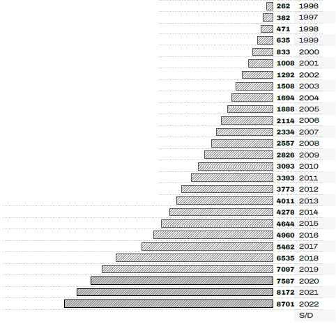 En esta 27ª actualización, se incorporaron 529 casos al Archivo, llegando a un total de 8.701 entre diciembre de 1983 y diciembre de 2022. De esos 529 casos nuevos, 436 corresponden al año pasado. Como el archivo se encuentra en permanente revisión, a partir de nuevos hallazgos, también se sumaron 91 casos ocurridos en el curso de 2021 y 2 de años anteriores.