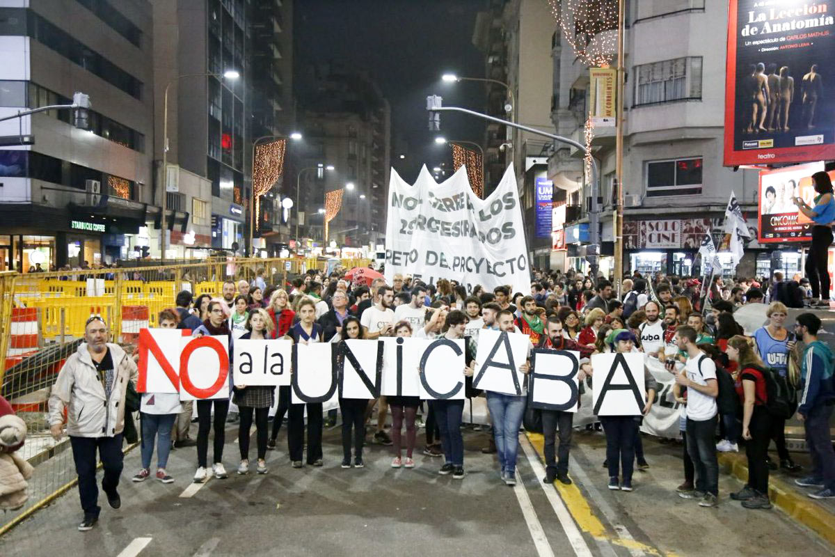 Estudiantes, docentes y familias marchando contra la UniCABA