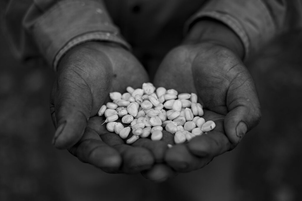 —Tiene que haber gente. La imagino en el campo. Creo que una persona cosechando maíz sería una buena foto o también una mujer pariendo, porque lo que quiero con la fotografía es expresar la vida, la semilla que crece y se cosecha.