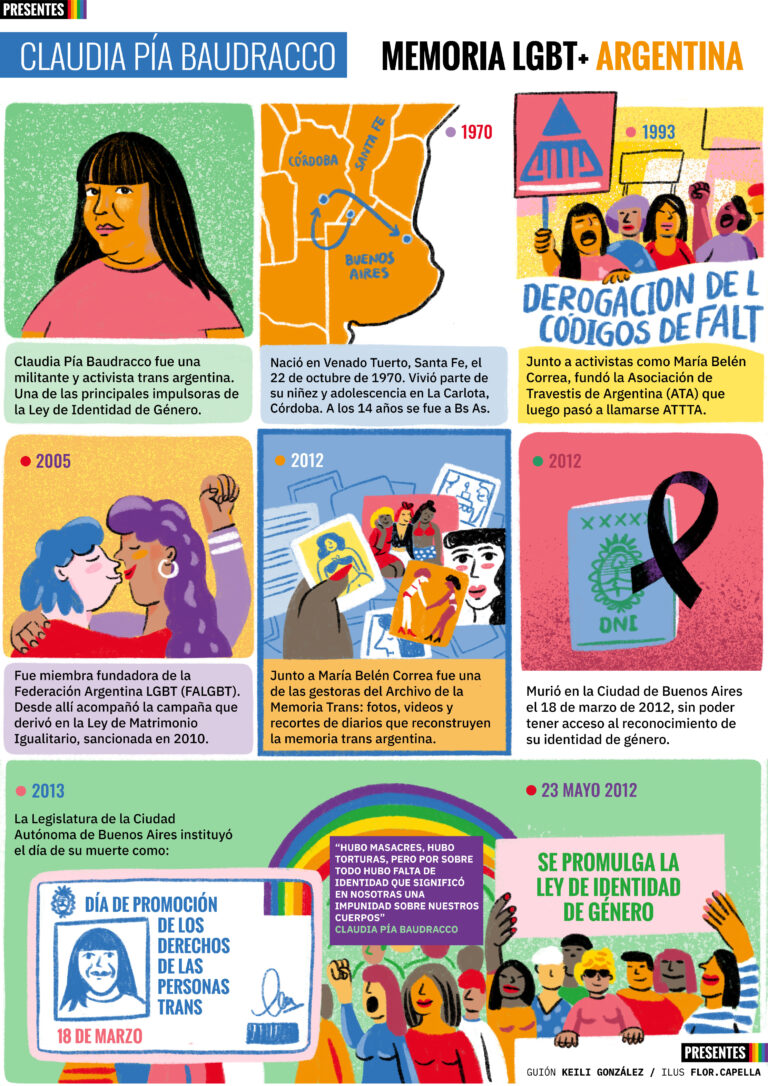 Acá te contamos quién fue Claudia Pía, una de las fundadoras del Archivo de la Memoria Trans, y por qué forma parte crucial de la memoria LGBT+ en Argentina.